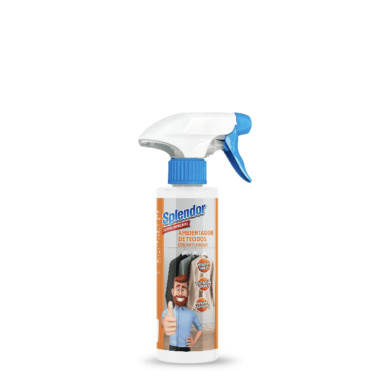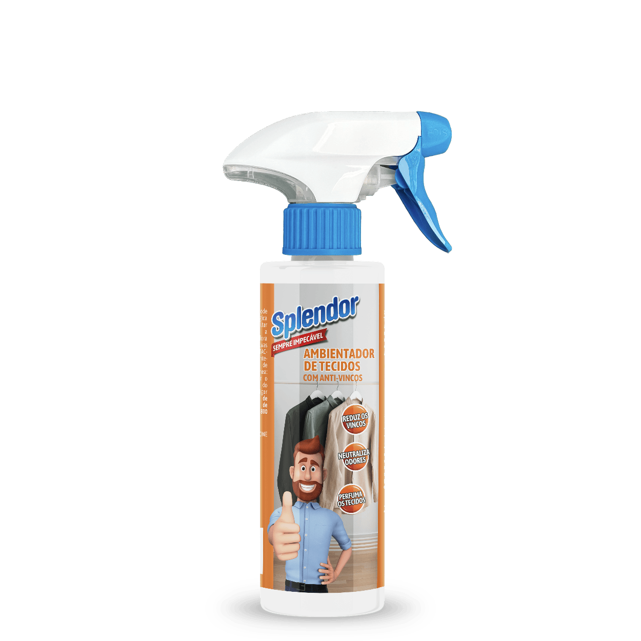 Spray de cheiro agradável que neutraliza os odores indesejáveis dos tecidos e reduz os vincos que aparecem na roupa ao longo do dia.